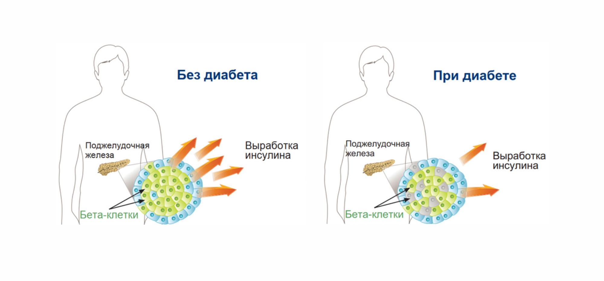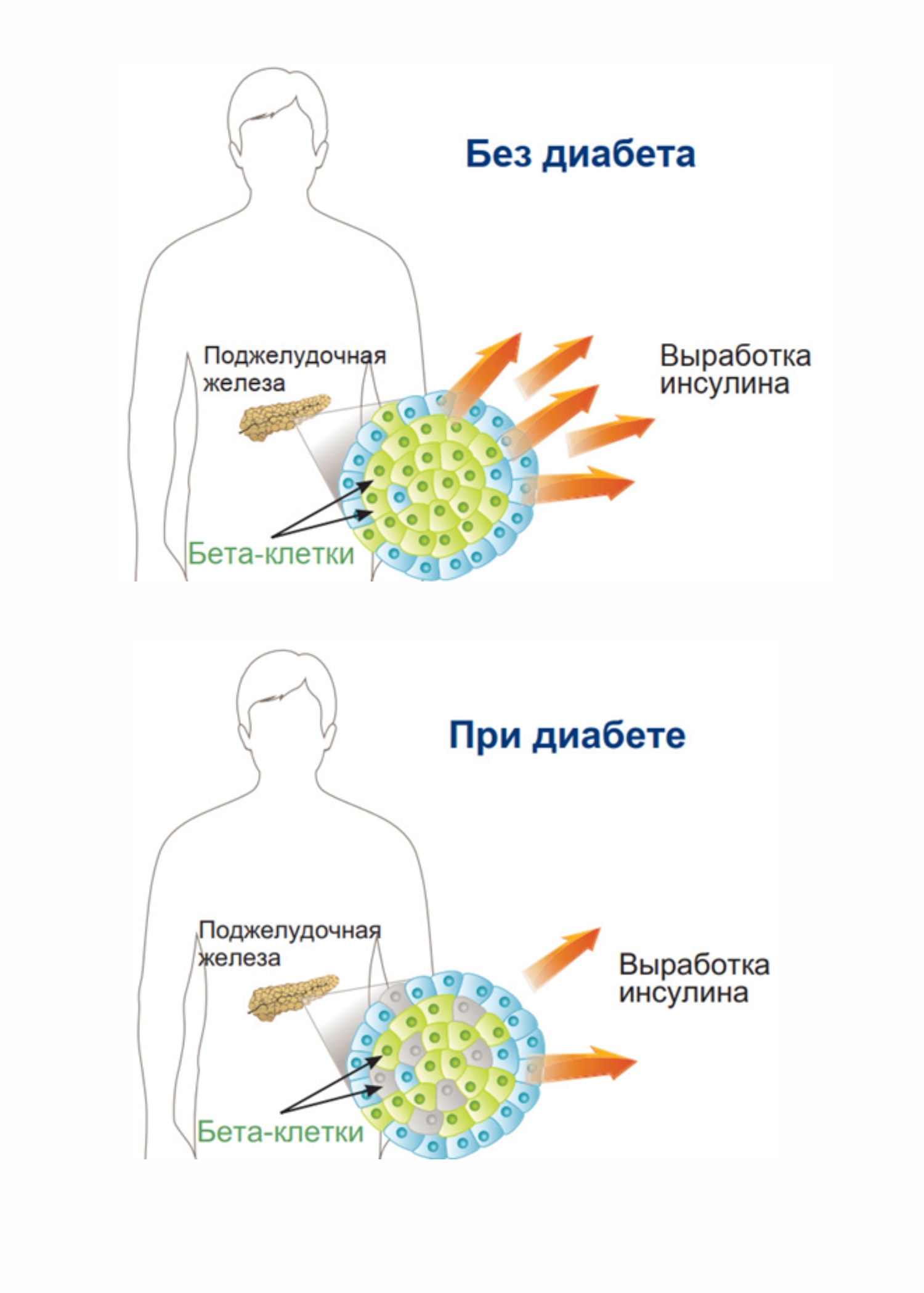 Точная причина диабета 1 типа неизвестна. Но у большинства людей с диабетом 1 типа иммунная система организма, которая обычно борется с вредоносными бактериями и вирусами, по ошибке уничтожает инсулин-продуцирующие (островковые) клетки поджелудочной железы.